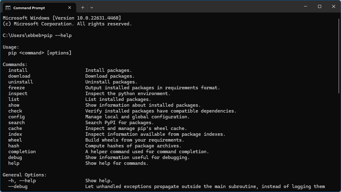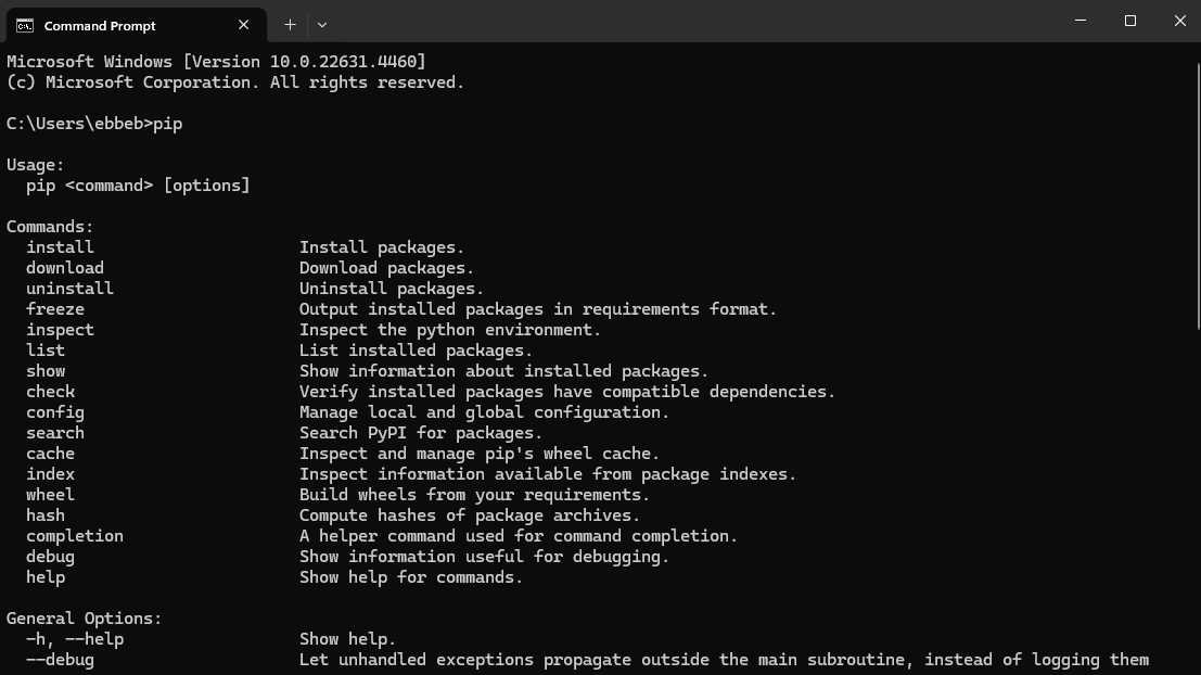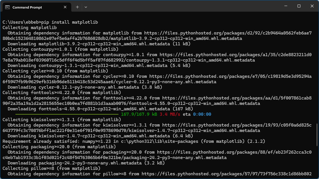 pip install <pakkenavn>.Installere pakken sammen med en annen pakke med